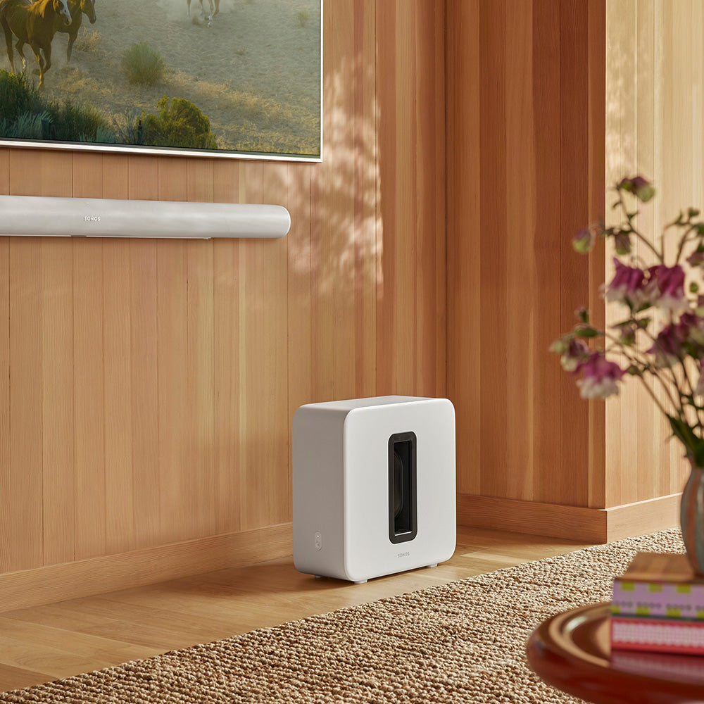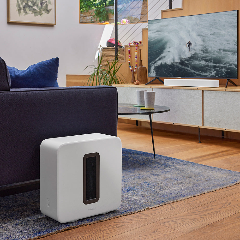 Pair Sub 4 with Sonos Arc Ultra, Arc, or Beam for dramatically richer bass, clearer highs, and deeper immersion in all your entertainment.1